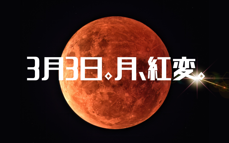 3月3日、ひな祭りの夜。空を見上げると、いつもとは違う「赤い月」が現れます。 地球の影に月がすっぽりと隠れる「皆既月食」が、日本全国で最高の条件で見られます!